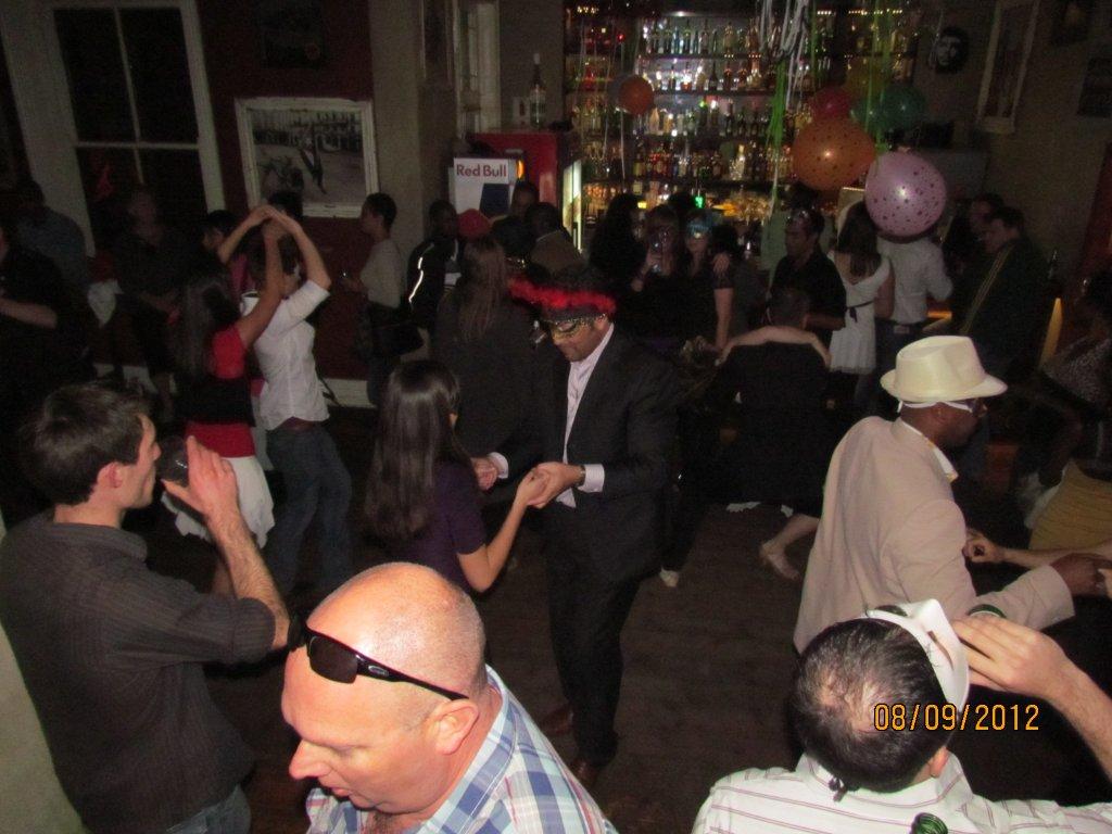 DJ Crazy A starts with a great song, people around you are hugging and greeting, chatting or running to replenish at the bar. Next to you a couple starts dancing, then you notice couples around you all spinning and moving while the music just gets better. Determined to join on the fun, you grab a partner and put into effect the moves you just learnt, soon you start playing with other moves. The happy bubble in your stomach grows and grows!