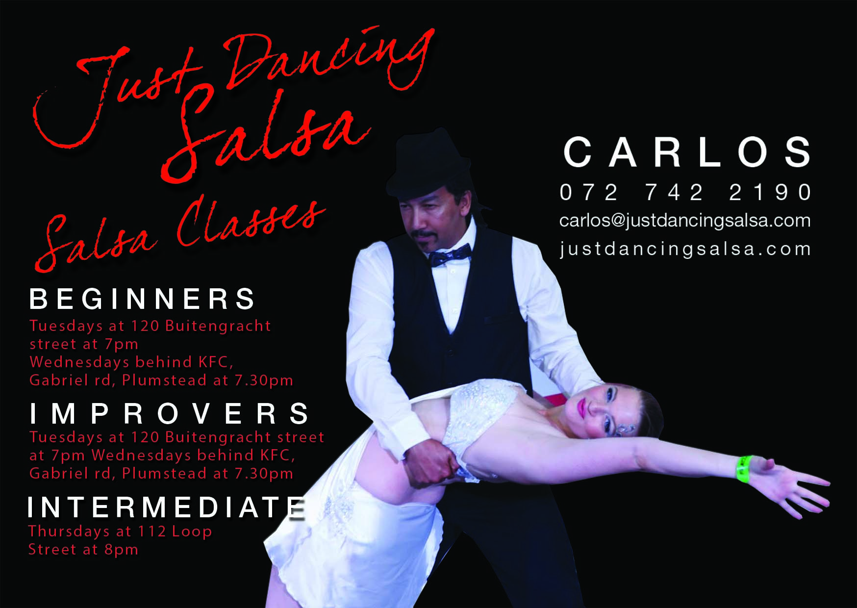 Just Dancing Salsa seeks to introduce people to salsa dancing, creating dancers, social networking and linking people with the salsa party vibes located at the best and most popular salsa venues in Cape Town.